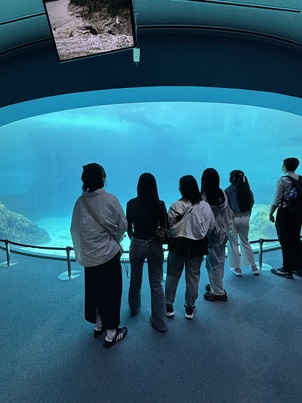 名古屋港水族館で集合写真!水族館のあとは名古屋散策です。