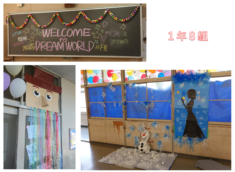 1,2年生は教室での展示か舞台での発表かのいずれかを各クラスで選んでいます。3年生の出し物は模擬店です。