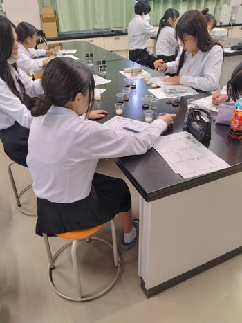 私たちは普段から、醤油や味噌、ヨーグルトやパンなど、様々な発酵食品を食べています。発酵食品とは、原材料に微生物が作用してできる食品です。この講義では、実際に発酵食品である醤油や甘酒を何種類かいただき、その味や見た目、においなどについて言葉で表現し、他者と共有することを通して、発酵食品に対する考え方を深めることができました。
