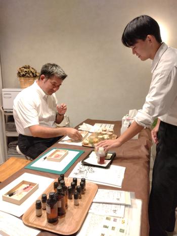 3年生LAS探究のチームが、奈良のヘルスアンドビューティーブランド「THERA(テラ)」さんとコラボさせていただきました。このチームは、「柿の葉」を使って奈良県がもっと元気になってほしいとの願いから、柿の葉の効能や利用方法について探究を進めています。今回は、虫除けスプレーやアロマオイル、塗香などの製品に柿の葉のエキスを入れていただきました。
