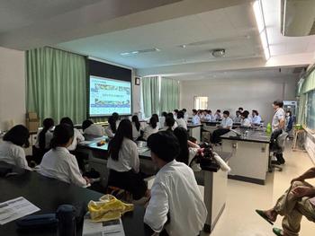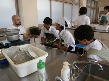 奈良先端科学技術大学院大学から、4名の留学生の方を講師としてお招きし、SDGs課題である「食品ロス」について考えるワークショップ形式の講義でした。講義中は終始英語で会話し、そうめんの調理や事前学習を元にしたグループ討議、英語での発表など、盛りだくさんの内容で、英語によるコミュニケーション能力や、食品ロスに対する問題意識など、様々な知見が深まった大変有意義な時間となりました。