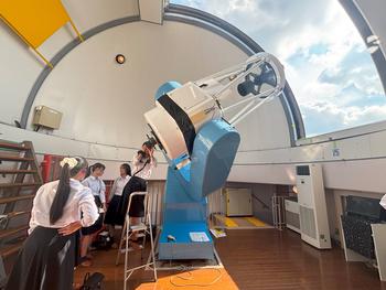 西はりま天文台にて、天文学の講義、昼間の太陽・恒星観測、そして夜間天体観望会に参加し、一日を通して宇宙について学びました。