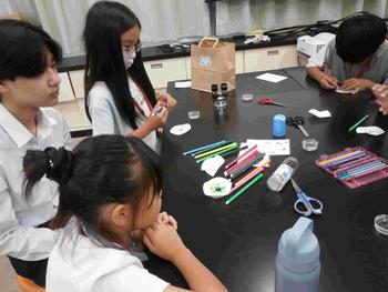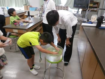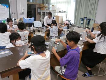 地域の小学生たちを招いて、本校のSSH委員・生徒会の生徒たちが楽しく実験会をしました。