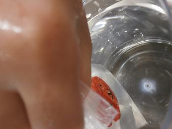 紙と袋に動物の絵を描き、水の中に入れて動物を変身させました。
