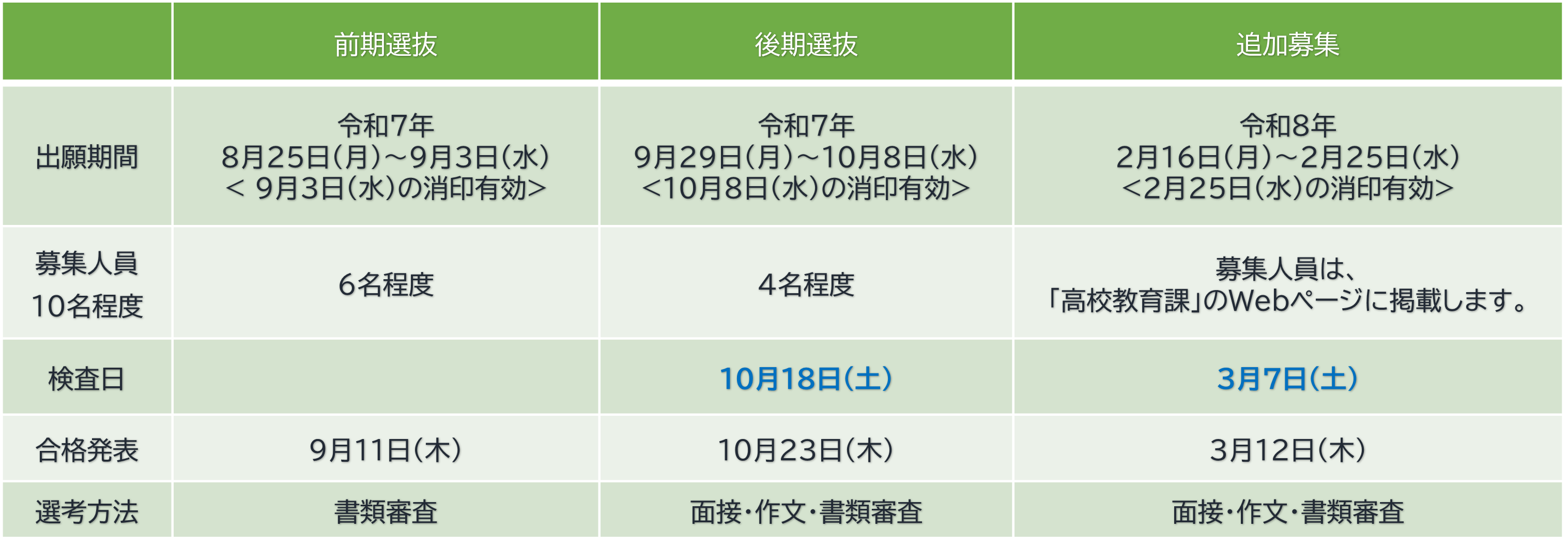 令和8年度 専攻科入学者選抜 募集人員および日程