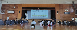 体育館は暑かったですが、交流委員の生徒による作文発表をしっかりと聞いてくれていました。