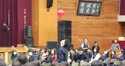 幕間の生徒会企画は「二階堂生の主張」。「陸上部にもっと部員がほしい!」「顧問の先生、ありがとう!」など、2人の男子生徒が叫んでくれました。
