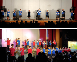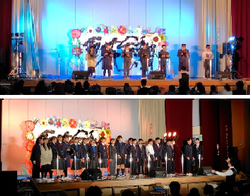 舞台はコーラス部の発表「僕らの心、青」。最後は、学舎の合唱部とコラボし「群青」を歌ってくれました。