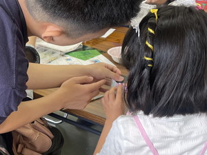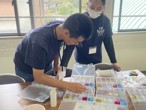 当日は、市内23名の小学生が集まり、万華鏡の仕組みや作り方の説明の後、5つのグループに分かれてオリジナル万華鏡づくりにチャレンジしました。きれいな模様になるよう中に入れるビーズの大きさや数を考えながら一生懸命に制作している姿や、たくさんの笑顔を見ることができ、翔人研の生徒にとっても貴重な経験になりました。