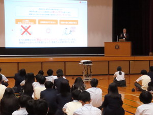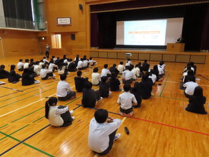 10月22日(水)、高校1年生を対象に、奈良県赤十字血液センターから講師の先生をお招きし、次世代の献血者を育て、高校生の献血に対する理解と関心を高めることを目的に献血セミナーを実施しました。血液不足問題の解消と将来的な血液の安定確保に向け、若年層が献血活動に積極的に参加できるよう、献血できる年齢になる高校1年生を対象に毎年実施しています。講師の先生は献血の安全性や注射器に施された工夫等の話を丁寧にしてくださったので、献血に対する疑問や不安が和らいだことと思います。今回のセミナーを通じて献血に対して前向きに取り組める生徒が少しでも増えてくれれば嬉しいです。奈良県赤十字血液センター様、また講師の先生、この度は本当にありがとうございました。