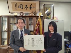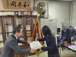令和7年度啓発標語及びポスター作品について「命を輝かそう~ともだちについて考えよう~」をテーマに応募をしたところ、標語の部において本校1年生福角優奈さんが応募した「命とは 最初にもらった プレゼント」が教育長賞(入選)を受賞しました。