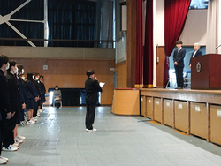 修了式では、まずはじめに3月1日に行われた卒業式への協力について在校生の皆さんに感謝と労いの気持ちを伝えました。