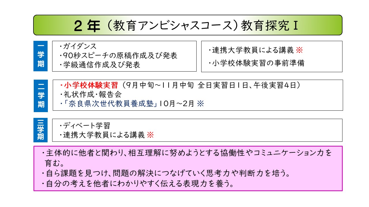 「教育探究Ⅰ」は第2学年で学校設定科目として週2時間学習します。