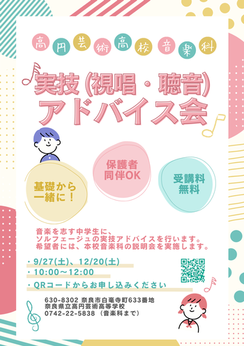 9/27(土)に音楽科実技アドバイス会を実施します。