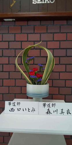 9月に実施される文化祭では、個人の生け花はもちろんのこと、部員全員の合同作品を展示しています。