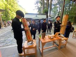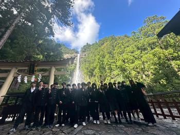 また、那智大社では、那智の滝を全員で見に行き、日本一のおみくじを体験したり那智大社周辺を探索したりいたしました。