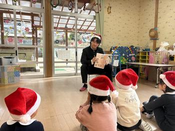当日は、自作の絵本の読み聞かせや、一緒に体を動かす遊びなどを通して、園児たちと楽しいひとときを過ごしました。