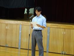 代表生徒は緊張していた様子でしたが、堂々と自分の考えを発表することができました。