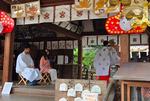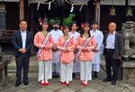10月25日(土)に大和郡山市で行われた「女王卑弥呼の三社巡り」に、本校の生徒3名がボランティアで参加しました。大和郡山市で選出された第43代女王卑弥呼の付き人として、郡山八幡神社、源九郎稲荷神社、薬園八幡神社を順に巡りました。参加した生徒たちは、所作の練習のときは緊張していましたが、付き人としての役割をしっかりと果たし、貴重な体験ができたと喜んでいました。
