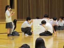 7月22日(月)、奈良県こども・女性課の皆様を講師としてお招きし、全校生徒で「奈良県こどもまんなか未来会議@青翔」を実施しました。「こどもまんなか社会」を目指すため、生徒一人一人その一員としての自覚を持ち、様々な視点から現状の課題について意見を出し合い、これからの未来がどうなっていって欲しいか、どうなっていけばもっと良くなるかを考えました。最終プログラムでは、新しくできた御所市の防災交流館のホールに全校生徒が集まり、各クラスの代表班が自分たちで考えたアイディアをスライドや模造紙を使いながら発表し、その一つ一つに課長の南様からコメントをいただきました。初めての試みでしたが、生徒たちは積極的に活動や発表に参加し、そんな青翔生の姿を県庁の職員の方々もあたたかい気持ちで支えてくださり、より良い奈良県を築くために本気になって頑張っておられる奈良県庁の方々と奈良県の未来について本気で考えるとても良い機会となりました。お忙しい中、ご来校いただきました職員の皆様、本当にありがとうございました。