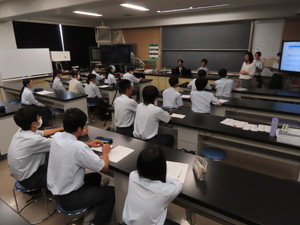 9月22日(月)、希望した生徒を対象に、地学オリンピックの本選に出場された先輩方からお話を聞きました。普段から図鑑や教科書を読み漁っていた先輩は、宇宙にとても関心があり、思い出すと既にその頃から地学に興味があったんだなぁと振り返っておられました。なにか熱中することを見つけたいと思い、中学生のうちから出場を始めたと言います。地学オリンピックに出場するにあたっての対策としては、中学では未履修範囲を潰すことを徹底し、高校生になってからは資料集や標本を見て学習することであるとのこと。元々、地学に興味があったり、好奇心旺盛だったため、地学を知ることはとても楽しく、それがとても大きな力になったそうです。特別な勉強をしていたというよりは、普段の受験勉強の傍ら、少し地学に比重を置くような過ごし方をしておられたとのことです。過去問は解いておくべきだそうです。初めて問題に触れたときは面食らってしまい、よくよく考えれば理解できる問題文もなかなか解けませんでしたが、何度も繰り返しているうちに思考力で解けるように慣れていけるそうです。長文読解や科学だけではない学問に対する思考力が身に付き、大学に入ってからも論文を読むときにも役立っているとお聞きしました。出場したことで、他の学校に通う仲間もでき、今でも交流があるそうです、そういった縁を見つけられるのも大きなメリットだそうです。最後に、生徒の質問にもとても真剣に答えてくださりました。きっと青翔生たちも地学オリンピックを目指す心に火が付いたことでしょう。お話しいただいた先輩方、本当にありがとうございました!