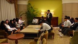 ホテルに到着。明日の学校交流に備えて代表者が打ち合わせを行いました。