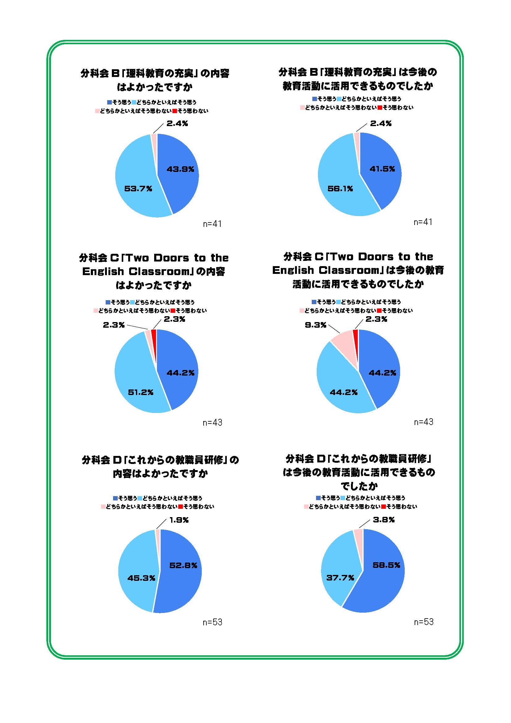 いただいた御意見を参考にし、今後の教育セミナーの充実を図っていきます。