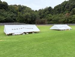 また、グランドでは芝生にトラックをつくる作業が少しずつ進んでいます。また、テントも設置され、いよいよ運動会当日と同じ舞台での練習が始まります。児童生徒・教職員・保護者をはじめ関係者のみなさんが「心ひとつに力を合わせて」準備をし、「元気いっぱいたのしくがんばれる」運動会にしましょう!!