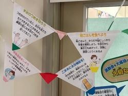 保健室前に「運動会を大成功させるために大切な5つの心得」と書かれたきれいな掲示を見つけました。いつも児童生徒の健康を案じてくれる保健室の先生たち。運動会では、保健室で休んでいる児童生徒がいない限り、常に児童生徒席横の救護用テントにいてくれます。未だ暑さが残る中、運動会本番だけではなく、予行練習も、全体練習もずっとです。本当に頭が下がります。ありがとうございます。
