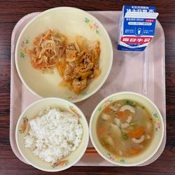今日の給食は、キムタクごはん・牛乳・いもなます・具だくさんみそ汁です。