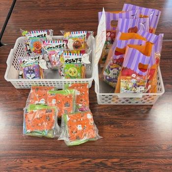 今日は10月31日、ハロウィンです。小学部の4つのクラスと1つのグループの児童たちが、かわいい仮装をして校長室を訪ねてくれました。お話ができる子は「トリック オア トリート!」「お菓子をくれなきゃ、いたずらするぞ!」と言い、お話が苦手な子は先生と作ったチケットを渡すなどしてくれました。私は「お菓子をあげるから、いたずらしないでください」と言いながら、事前に先生たちが準備してくれたお菓子を手渡しました。