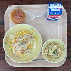 クリームスパゲティは香り高く、やさしい味付けの中にとても深い味わいがありました。献立表を見ると、バター・牛乳・生クリームの他に、おろしにんにくやオリーブオイル、ミックスチーズやローリエ等が並んでおり、すごく丁寧に調理していただいたことが伝わる納得のクオリティでした。