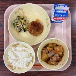 今日は、寒い日にピッタリのおでんの登場です。これまで私は関西風の「出汁のおでん」しか食べたことがなかったのですが、今日の給食で、八丁みそと白みその「合わせみそ」のパンチが効いた、白ごはんとよく合うみそおでんの大ファンになりました。
