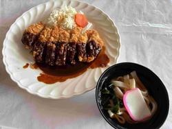 昼食は愛知名物の味噌カツときしめんを食べました。