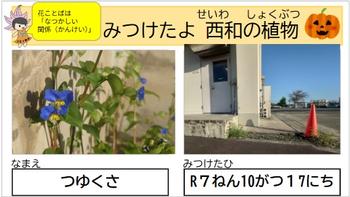 校内では秋が深まり、つゆくさがかわいい花を咲かせています。