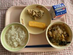 ごはん ぎゅうにゅう たまごやき だいこんサラダ すきやき |